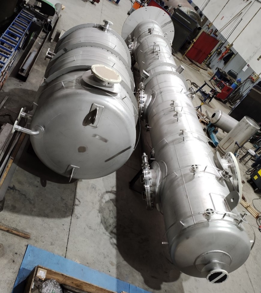 Entre nuestros últimos proyectos, CAPERVA ha supervisado el desarrollo de planos mecánicos, la construcción y acondicionamiento, la inspección y la entrega en plazo, de una columna de destilación y condensador de tope en acero inoxidable 316L, para una planta química en Suiza, y de dos condensadores en aleación (alloy) B3, para una planta química en la India.