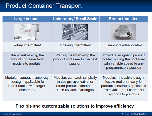 La tecnología de llenado aséptico de DEC puede proporcionar dosificación de líquidos y sólidos en polvo (incluido el llenado dual) en viales o jeringas, incluso en aplicaciones tóxicas estériles, todo ello dentro de nuestra tecnología de aislamiento y contención.